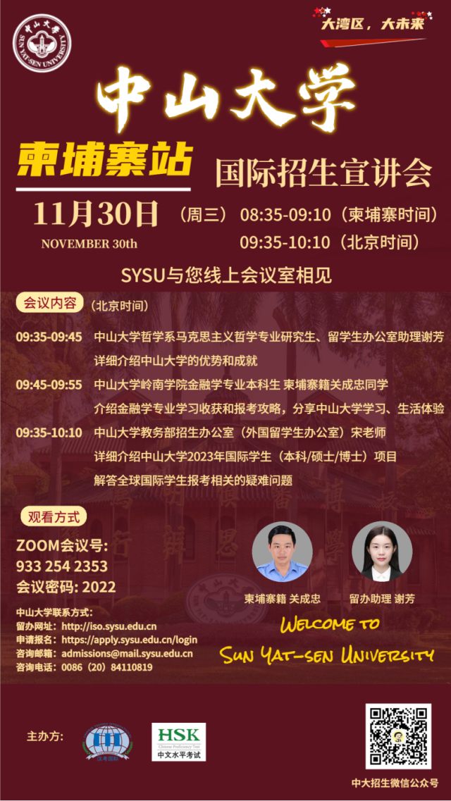 直播预告 | 中山大学2023年国际招生宣讲会(柬埔寨站 2022年11月30日)