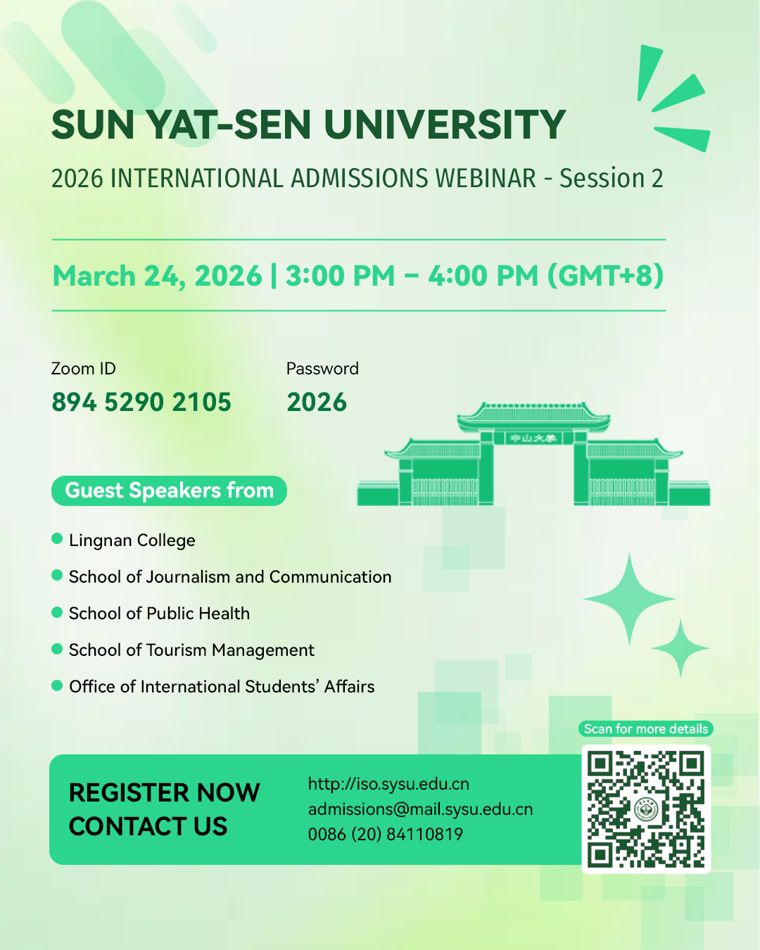 直播预告 | 中山大学2026年国际招生宣讲会(报考详解 3月24日)